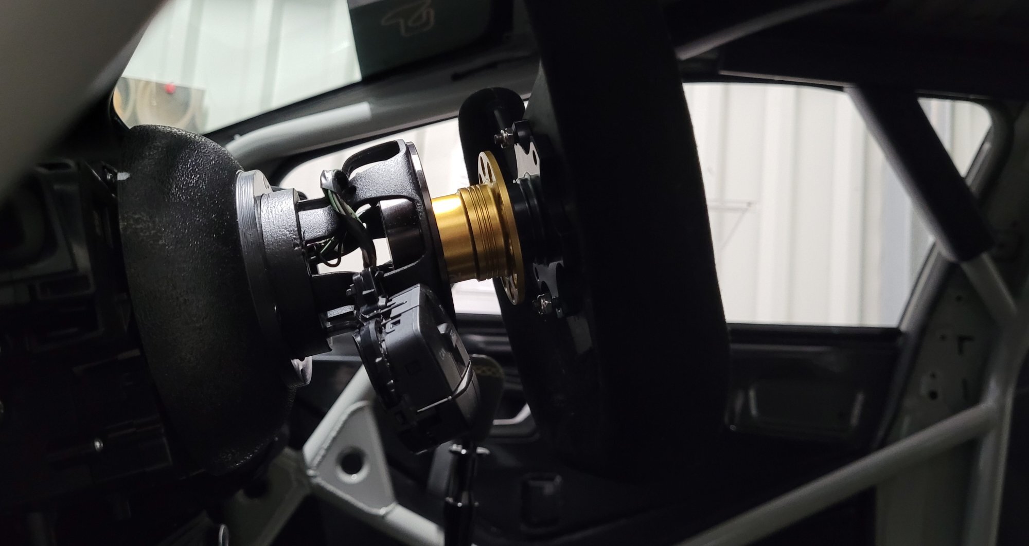 Mit Lenkradnabe sind es gesamt ca. 15 cm wo das Lenkrad näher kommt.